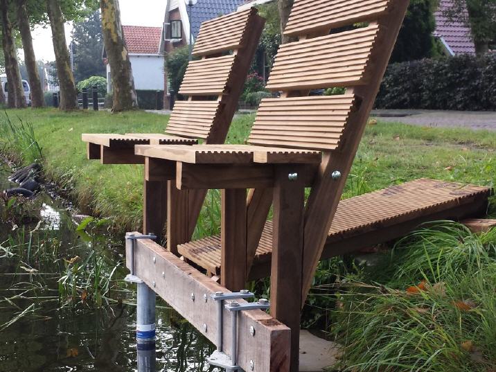 Met Vlottezit kunt u aan het water zitten op uw eigen bank, afgestemd op uw persoonlijke wensen, zonder dat u telkens een stoel vanuit huis hoeft mee te nemen. Het kan opgebouwd en afgewerkt worden met diverse houtsoorten. Ook kunnen diverse opties voor uw worden uitgewerkt, bijvoorbeeld een voetensteun of een plantenbak aan de zijkant.